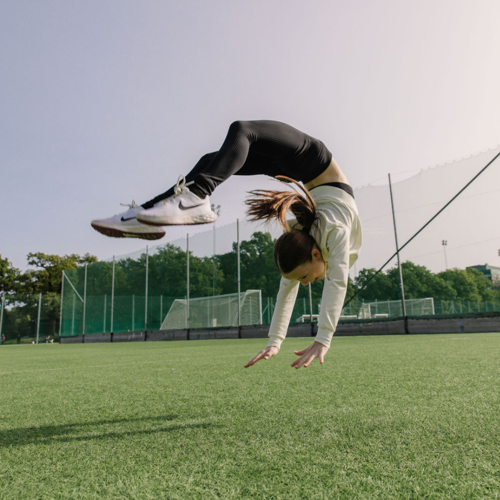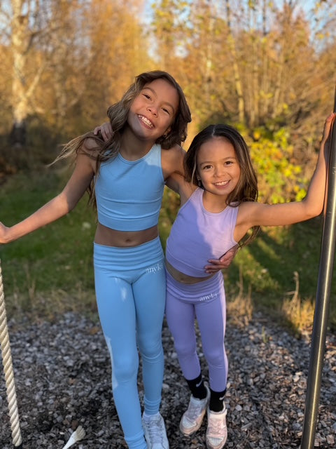 Vi designar träningskläder specifikt för barn och unga tjejer. Det betyder att vi inte gör vuxenmodeller i mindre storlek. På så sätt får våra plagg rätt passform som i sin tur gör barnets rörelser enklare att utföra.